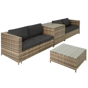 Crea la tua oasi di benessere personalizzata con il versatile set in rattan di tectake! Questo robusto mobile è combinabile e offre un’elevata flessibilità. Grazie al suo design sobrio, si inserisce armoniosamente e facilmente in qualsiasi ambiente. I cuscini extra spessi garantiscono comfort e praticità. Possono anche essere comodamente riposti nel pratico contenitore. Quest’estate, riservatevi il posto migliore nel comodo set in rattan di tectake.